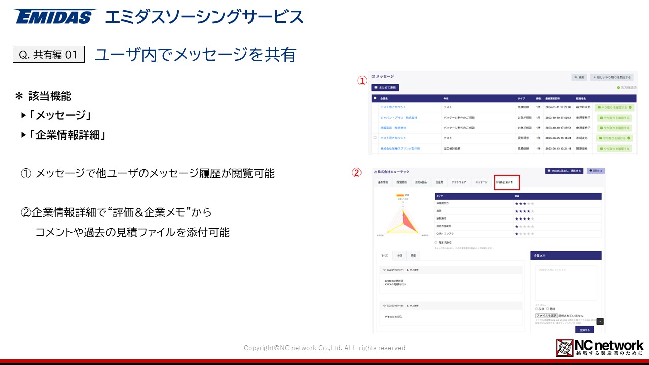 Q: やりとりした工場の見積や所感を社内で共有したい